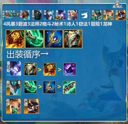 阵容组成 图奇、韦鲁斯、洛、萨勒芬妮、霞、索拉卡、巴德、艾达丝。阵容羁绊 3迅捷射手、3秘术、3金鳞、2冒险、2怒翼。巨龙强化推荐 迅捷射手之徽、最佳好友、源计划上行链路、组件百宝袋、DD街区、急救用具、三费之力、万用瞄准镜、狩猎律动。