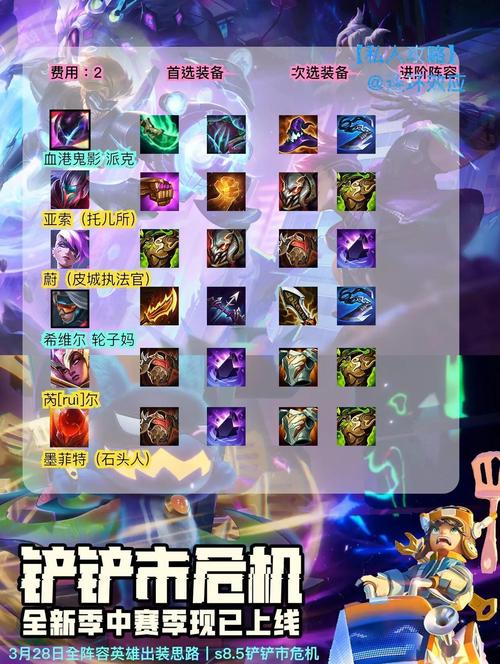 〖One〗、首选装备:鸟盾。鸟盾能为周围友军提供护盾,增强团队的生存能力,是尼菈在多数阵容中的首选装备。阵容过渡与运营 开局抢装:优先抢拳套或法爆,根据装备情况决定走连胜还是连败路线。3-2拉6人口:小D一波找2星亚索,搭配3超英4决斗羁绊即可锁血,随后卡50利息慢D三星亚索。