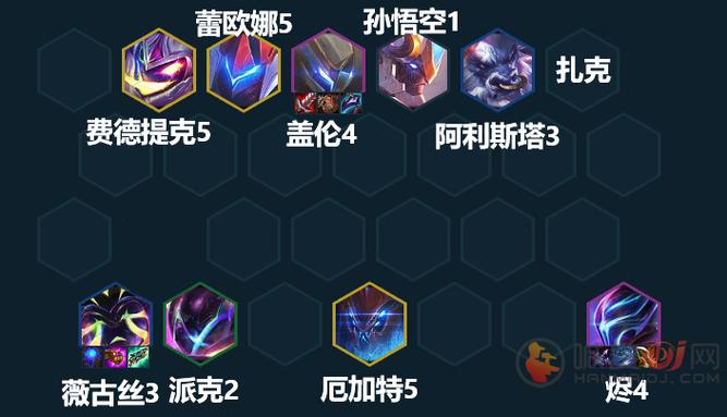 〖Five〗、阵容组成 金铲铲之战S8机甲怪兽九五阵容主要由以下英雄组成:扎克、孙悟空、索尔、以弗所、奥加特、迦娜、塞提、利昂娜以及厄运的预兆(厄运小姐)。这套阵容兼具伤害与控制,且前排坦度较高。核心装备推荐 索尔:作为主要输出点,索尔的核心装备是蓝buff,以快速释放技能。