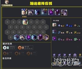 〖Four〗、《金铲铲之战》S7重骑冒险射阵容玩法攻略 阵容组成 核心英雄:琪亚娜、图奇(老鼠)、瑟庄妮(猪妹)、伊泽瑞尔(EZ)、泰隆(男刀)、巴德、赫卡里姆(人马)、璐璐。阵容站位与职责 前排:由猪妹承担主要伤害吸收任务,站在前排吸引敌方火力。
