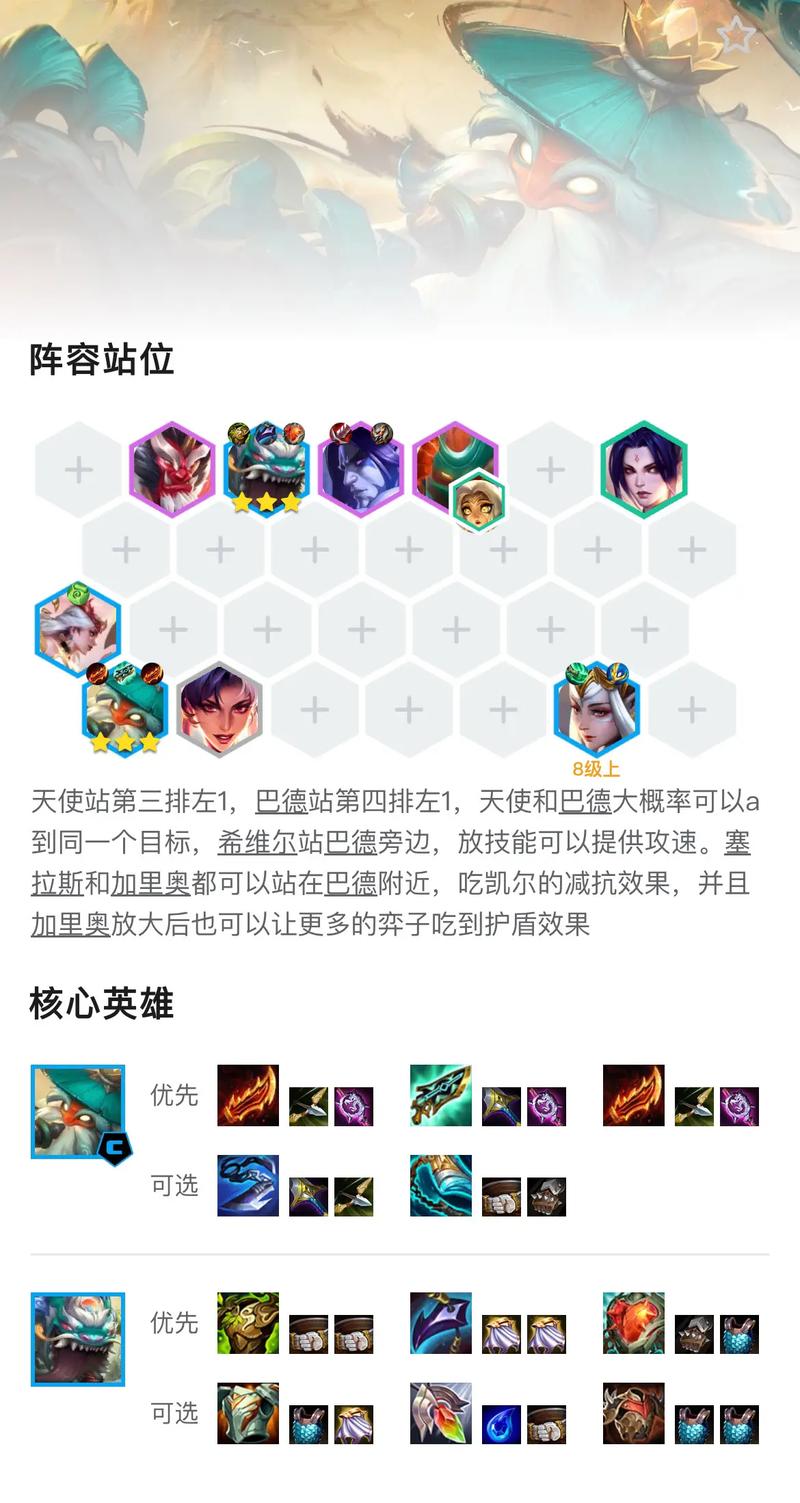 〖Four〗、阵容搭配:- 传送门多才多艺:【赛季之星】为自身的另一个羁绊提供+1计数。前期运营:- 开局如果能够拿到塔姆乡村乐的天选,可以组三乡村乐打工,搭配娜美、宝石、酒桶、卡特,开3乡村乐3迪斯科2格斗。将1个灯球放在第二排,给前排提供奶血和攻速。