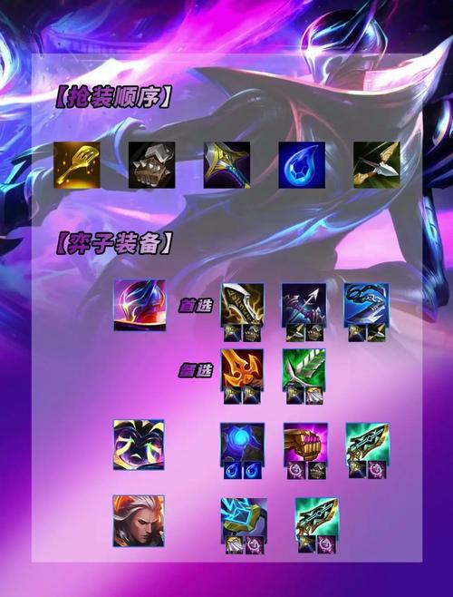 索尔:朔极之矛+科技枪刃+珠光护手。朔极之矛加快技能释放效率,科技枪刃增加全员续航,第三件法系装备都可。卑尔维斯:夜之锋刃+正义/饮血+物理输出装。夜之锋刃保命能力优质,续航装备看情况选取饮血或正义,第三件最优是轻语。盖伦:坦度装备都可,如荆棘背心、龙牙、狂徒铠甲等。