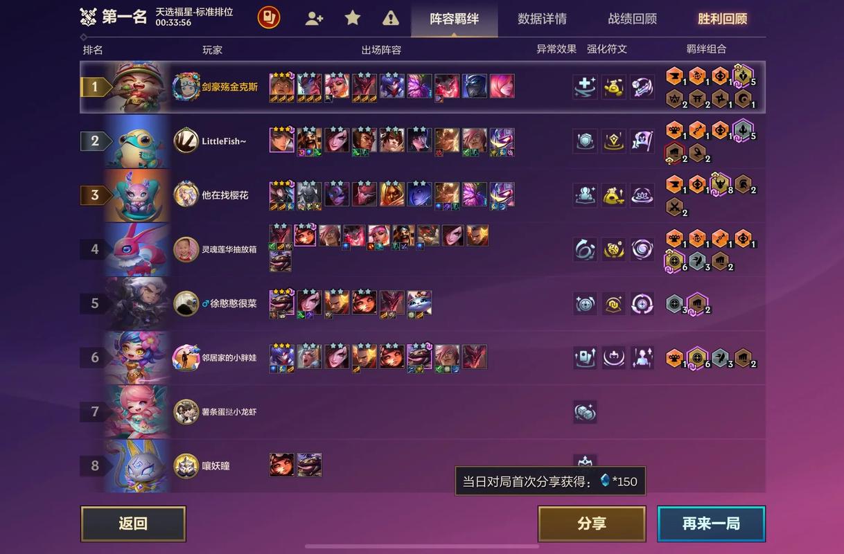 阵容构成 该阵容由安妮、可酷伯、莎弥拉、吉格斯、佛耶戈、盖伦、妮蔻、悠米、艾克九位英雄组成,核心羁绊为4战略分析师、3超频战士、3街头恶魔。强化推荐 优选:升级咯!、双排、透体莲花I。这些强化能够显著提升阵容的整体实力和灵活性。次选:火爆甩卖、一万智商、新纪元、高端购物II。