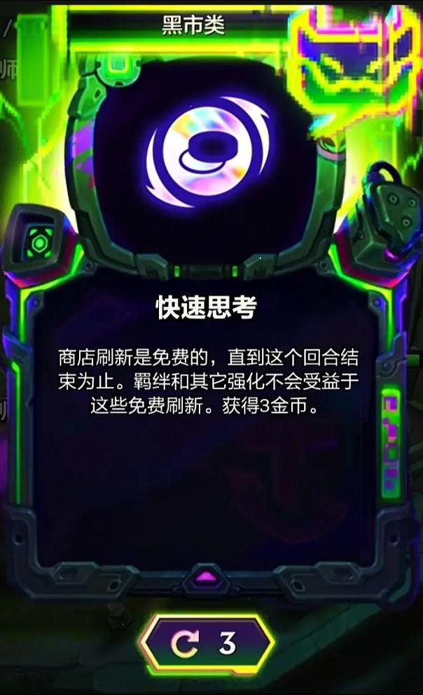 在《金铲铲之战》这款游戏中,快速思考被归类为三级强化符文。它的功能在于,当商店刷新时,玩家能够享受免费的刷新,这一优惠将持续到本回合结束。值得注意的是,这个符文的效果并不会对羁绊或其它强化产生影响。此外,使用快速思考符文还可以获得3金币的额外奖励。