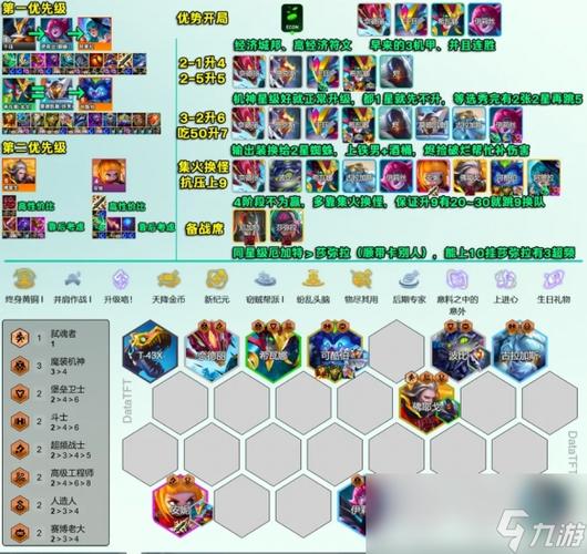 〖One〗、阵容构成:佐伊、安妮、努努、索拉卡、迦娜、辛德拉、艾克、阿利斯塔、乐芙兰。羁绊组合:3小天才、2福牛守护者、2AI程序等,形成多元化的羁绊效果。装备推荐:佐伊优先装备莫雷洛秘典、蓝霸符,安妮则作为前排肉盾,装备石像鬼板甲、荆棘背心等。