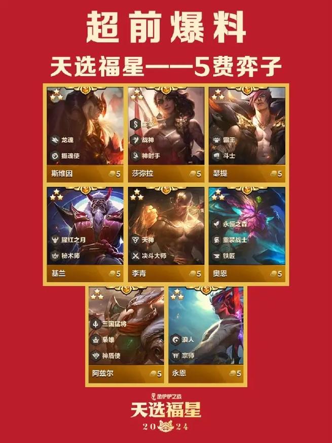 金铲铲之战天选福星2024五费卡有哪些-金铲铲之战天选福星2024五费卡一览...