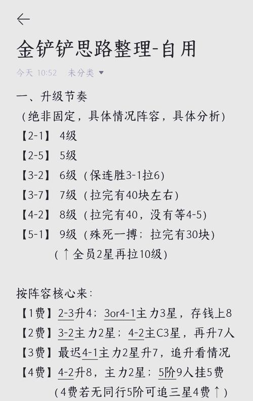 〖Four〗、这套套路的核心在于灵活调整阵容和合理利用资源。在游戏初期,通过1费卡升2星来稳定局势;中期则注重装备积累;后期则根据发牌情况灵活调整阵容,并转型为九五至尊加龙王等强势阵容。通过这套策略,你可以在《金铲铲之战》中取得更好的成绩。当然,游戏策略并非一成不变,还需要根据具体情况进行灵活调整。