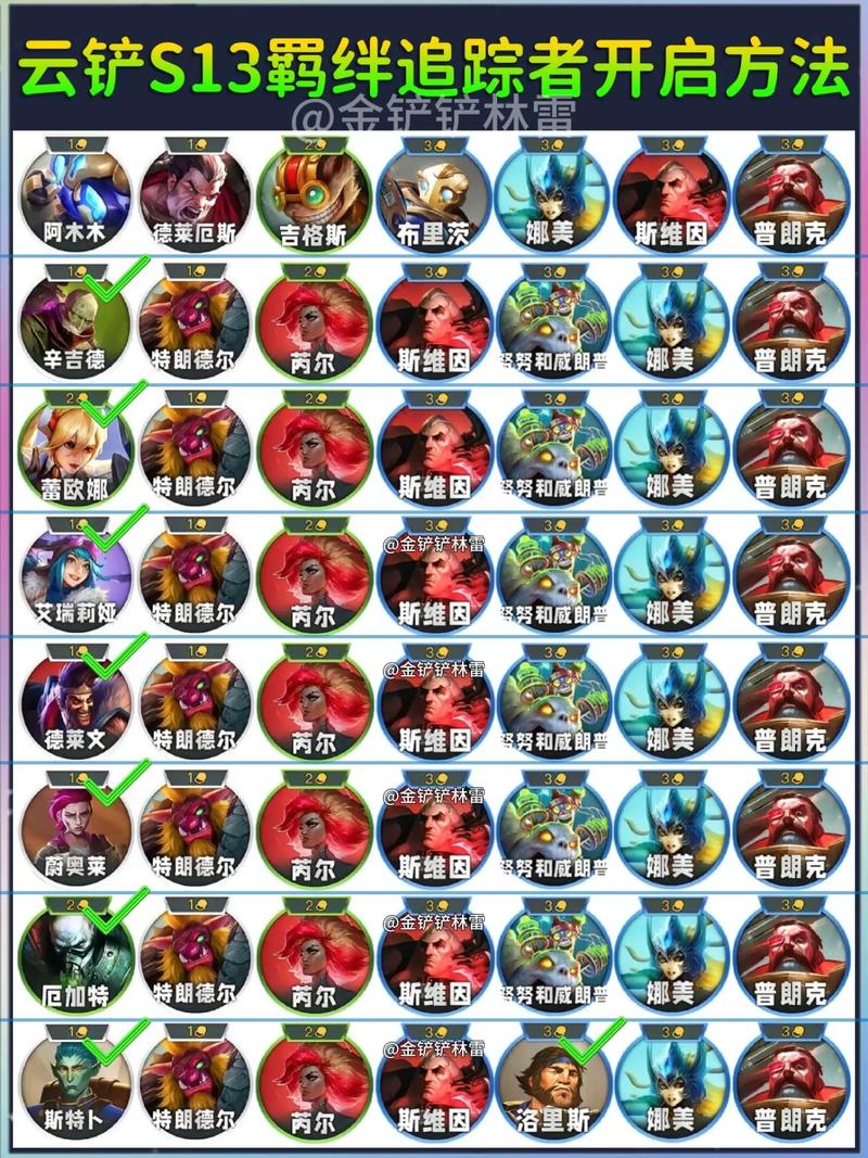 〖Five〗、在《云顶之弈》或《金铲铲之战》的巨龙之巢赛季中,要开出羁绊追踪者,需要在首次激活8个非唯一羁绊时。以下是一些具体的策略和建议:阵容搭配:为了达成8个非唯一羁绊的条件,玩家可以采用特定的阵容搭配。例如,有玩家推荐了使用神龙尊者、换形棋子等核心棋子来构建阵容。