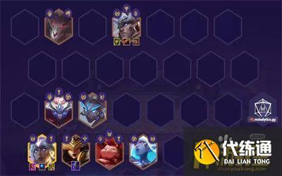 阵容搭配 棋子:雷霆咆哮—沃利贝尔『5』、德玛西亚之力—盖伦『5』、艾翁—小菊『4』、狂野女猎手—奈德丽『3』、天启者—卡尔玛『4』、暗黑元首—辛德拉『2』、迅捷斥候—提莫(6血)、众星之子—索拉卡『2』。羁绊:1神王凯旋、1大魔王、4黎明使者、4神谕者、2复苏者、2复生亡魂。