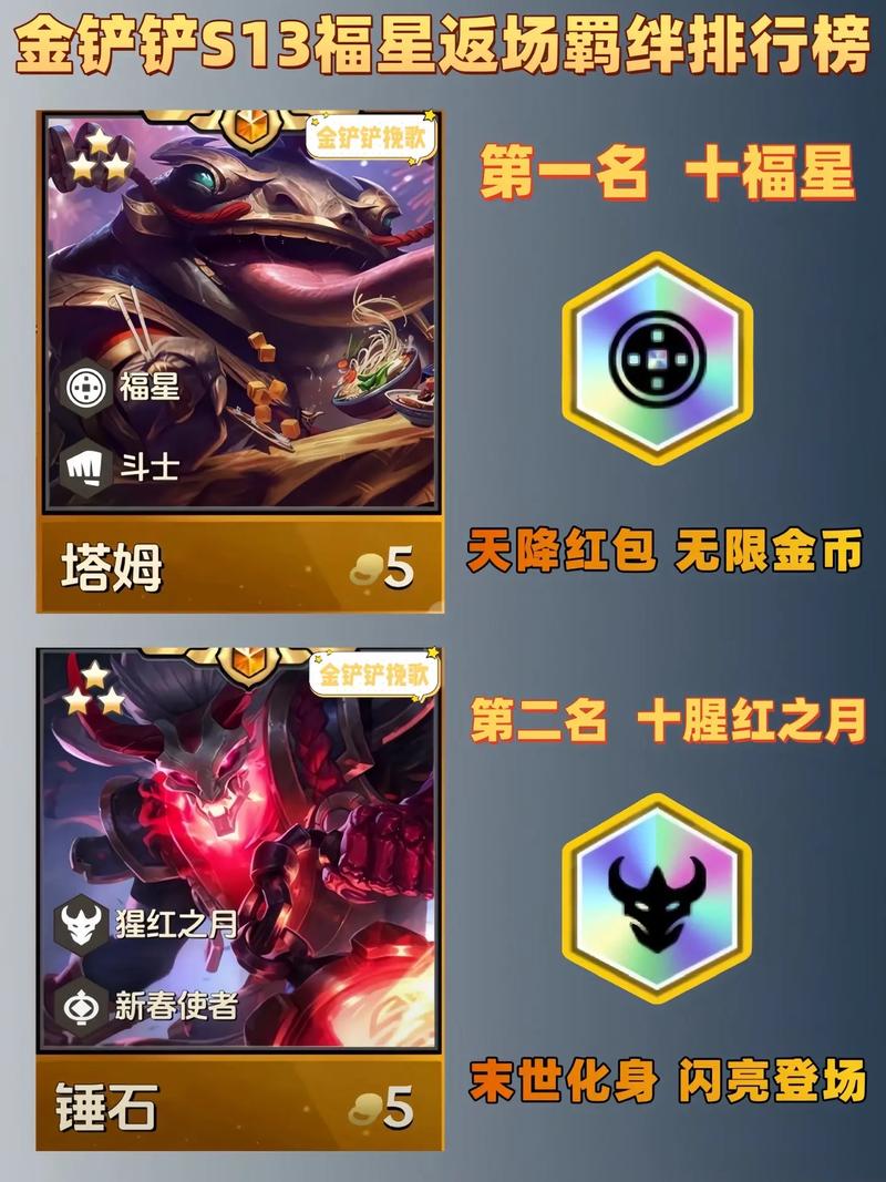 天选之人选定一名英雄后,可以使他的一个羁绊变成双份,即该英雄一个人可以充当两个该羁绊的角色。这一特性在构建阵容时具有极大的灵活性,可以帮助玩家更快地达到羁绊的触发条件,从而提升整体战斗力。升级为二星英雄 被选定为天选之人的英雄会直接升级为二星,获得相应的属性加成。