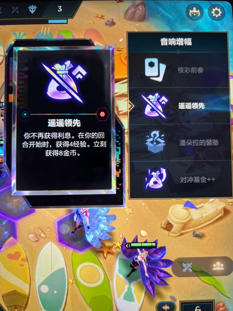 〖Three〗、对冲基金效果:对冲基金是塔姆的专属海克斯强化,其效果是将游戏中的最大利息提升至10。在正常情况下,游戏中的最大利息是5,即当玩家存放50块或以上的金币时,每回合可以获得5金币的利息。但有了对冲基金后,玩家存放100块金币时,每回合可以获得10金币的利息。