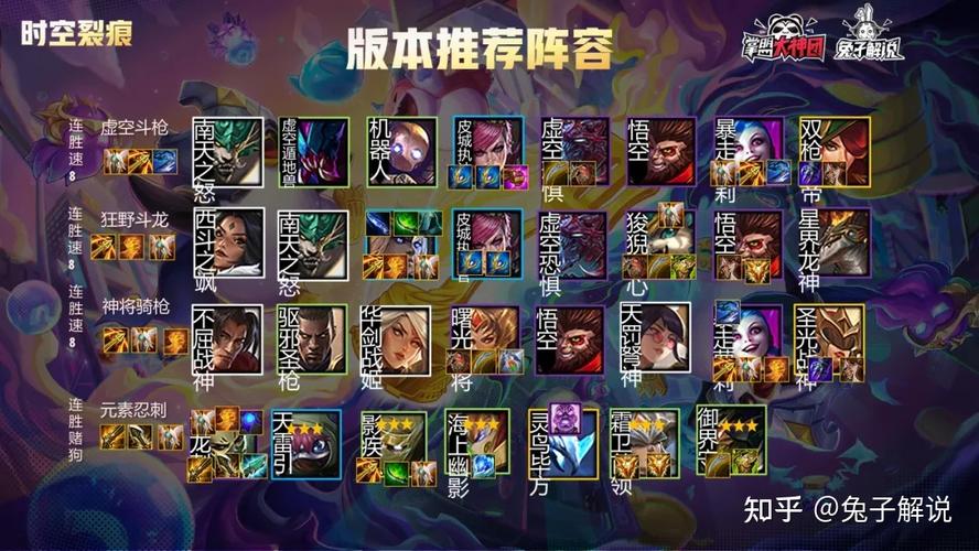 建议:在构建此阵容时,注重提升璐璐的星级和法术强度,同时确保其他英雄的配合和装备选取,以最大化整体输出能力。综上所述,以上三个阵容在金铲铲之战19时空裂痕版本中均具有较高的竞争力。玩家可以根据自己的喜好和游戏节奏,选取合适的阵容进行搭配和尝试。