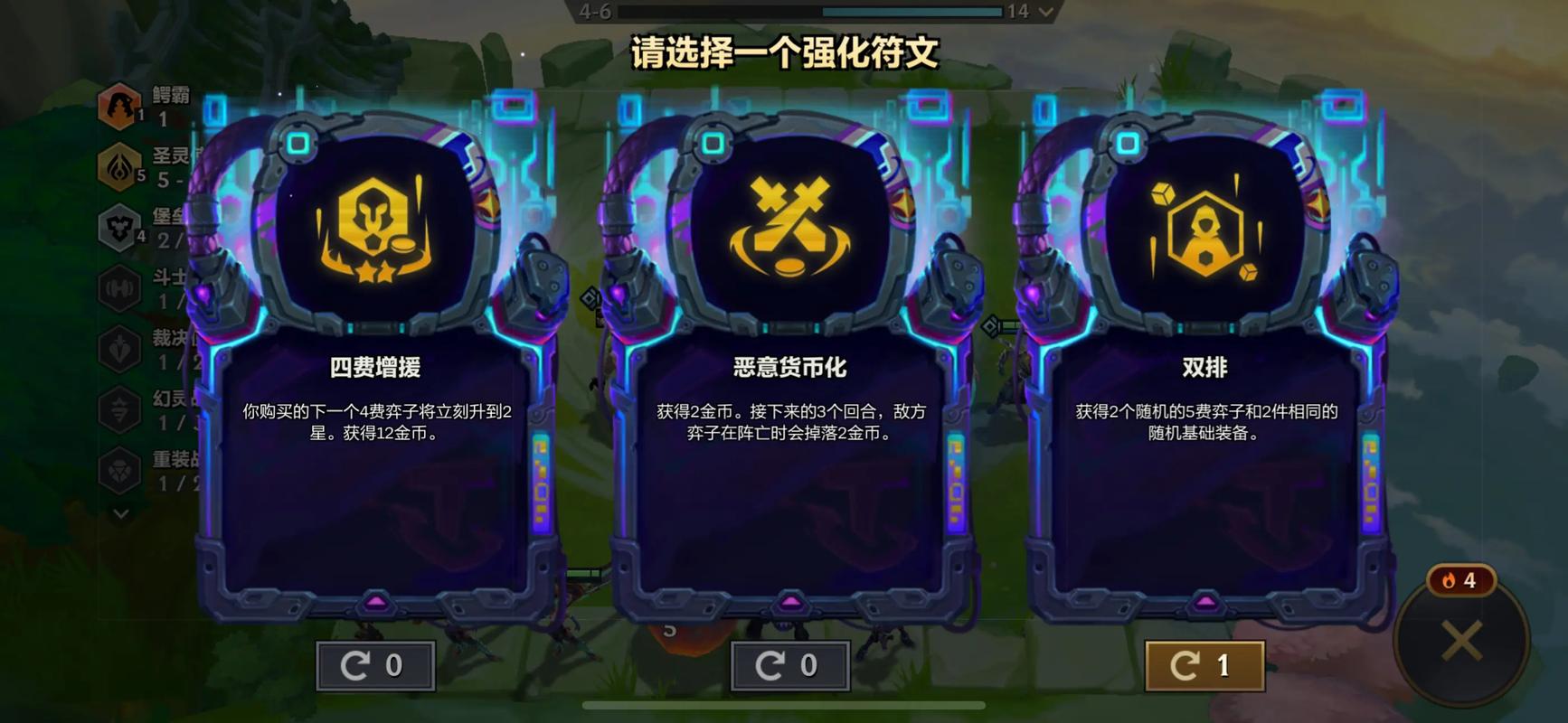 看到必选(T1)窃贼帮派:能够提供额外的装备和金币,极大增强前期战斗力。新人入队:为队伍提供额外的英雄,增加阵容灵活性和战斗力。升级咯:快速升级人口,提高阵容上限。前进之路:提供额外的经验值,加速升级过程。羽量级III:为低费卡提供额外攻速,适合赌狗阵容。
