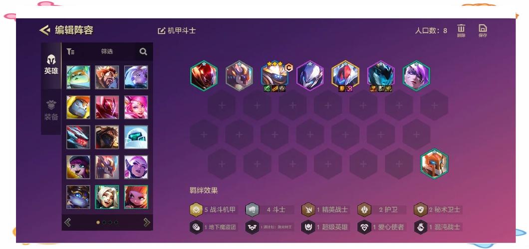 羁绊效果:机器人在开始战斗时拥有满额的蓝量。 浪人:羁绊效果:战斗开始时,如果浪人附近没有友军,浪人会获得一个护盾。 虚空:羁绊效果:整个队伍的所有普攻无视敌人50%的护甲。 刺客:羁绊效果:刺客会获得150%的暴击伤害。1 帝国:羁绊效果:帝国的角色会造成双倍的伤害。