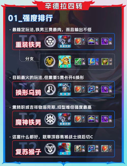〖Four〗、玩法建议 辛德拉作为阵容的核心,需要尽早合成适合她的装备,如蓝霸符、珠光护手等。在阵容成型后,注意调整站位,保护辛德拉等核心输出英雄,避免被敌方集火。合理利用执事和黑魔法师的羁绊效果,提升阵容的整体实力。