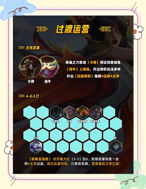 核心阵容 英雄选取:船长、皇子(需纹章转职)、刀妹、烬、霞、瑟提、慎、卡尔玛、狐狸。羁绊效果:9艾欧尼亚,提供425%的羁绊加成和4个灵体效果,每4秒获得20法力值和双倍属性加成。纹章获取 合成路径:通过金铲铲和大剑合成艾欧尼亚纹章,为船长和皇子转职。