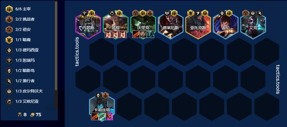 在《金铲铲之战》的新版本中,狙神转职成为了极为关键的存在,尤其是当你拿到狙神转职时,几乎可以确保你在游戏中的排名位于前列。以下是对狙神转职以及围绕其构建的六狙亚飞阵容的详细解析。阵容组成与羁绊 阵容组成:凯特琳、克罗莫、千珏、赛娜、锤石、厄斐琉斯、奥恩(注意:原文中锤石重复提及,应为笔误,这里只列出一个锤石)。