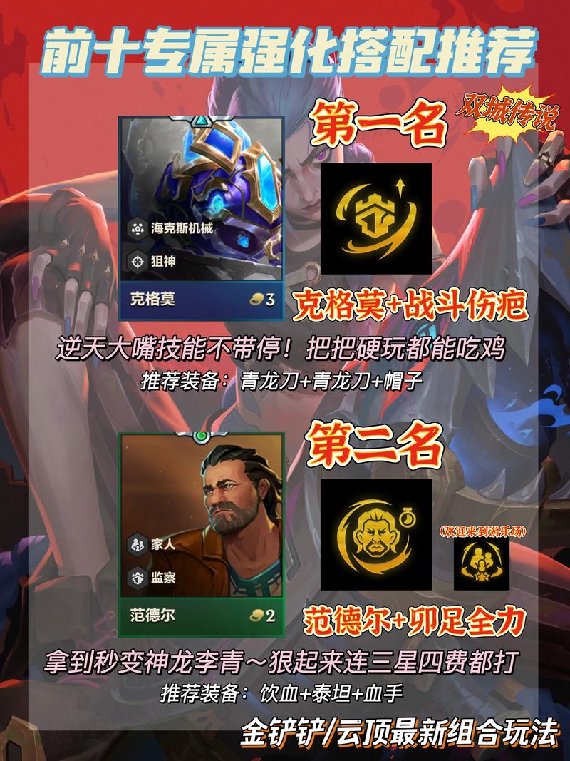 〖Two〗、层:奖励中会提供双龙目的海克斯强化、金铲铲及基础装备锻造器,但未明确提及冠冕,推测100层是主要获取节点。50层有小概率通过装备选取器刷出金铲铲,但冠冕需依赖更高层数。冠冕类型与特殊效果 群英冠冕:需凑齐九金鳞龙阵容获得,效果为每4秒普攻秒杀一名敌人,但需通过羁绊激活而非层数奖励。