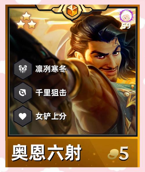 金铲铲之战S9的五费卡包括:瑞兹、赛恩、黑默丁格、阿狸、卑尔维斯、赛娜、亚托克斯和奎桑提。以下是这些五费卡的简要介绍:瑞兹:其技能会根据游戏开始时选出的地区传送门而变化,为玩家提供多样的策略选取。
