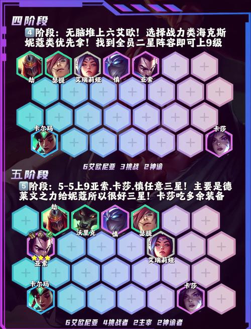 阵容羁绊组合 核心羁绊:5墨之影、2迅捷射手、2决斗、2天龙、2幽魂、2擎天卫、2护卫。这个羁绊组合构建了一个既稳定又具备爆发力的战斗体系。英雄选取 贾克斯(1费)、剑魔(2费)、赛娜(2费)、狗熊沃利贝尔(3费)、卡莎(4费,主C)、乌迪尔(5费,副C)。
