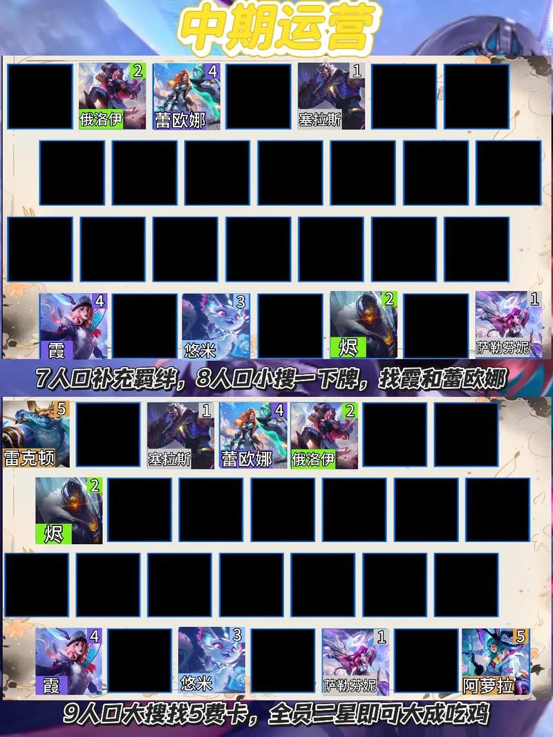 〖Three〗、阵容构成 核心羁绊:4灵能、4福牛、2秘术。符文与装备选取 符文分析:优先选取通用法系强化和体系英雄强化。装备搭配:主C卡牌:法爆必备,其余可选羊刀、电刀、科技枪、巨杀、正义等。副C妮蔻:多余的回蓝装(青龙刀、蓝BUFF)及法强装(法爆、帽子等)。