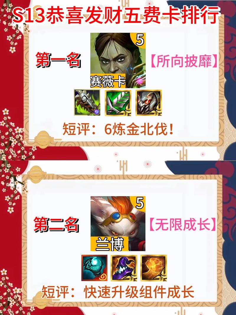 〖Five〗、备选大棒:若抢不到反曲弓,可抢大棒,大棒能合成的鸟盾是多个核心阵容的关键装备,前期可帮助拉人口打连胜。 合成强势装备:大棒还可合成大天使之杖等强势装备,或利用野怪爆出的魔抗装备合成鬼书、法爆、离子等,保证前期连胜。