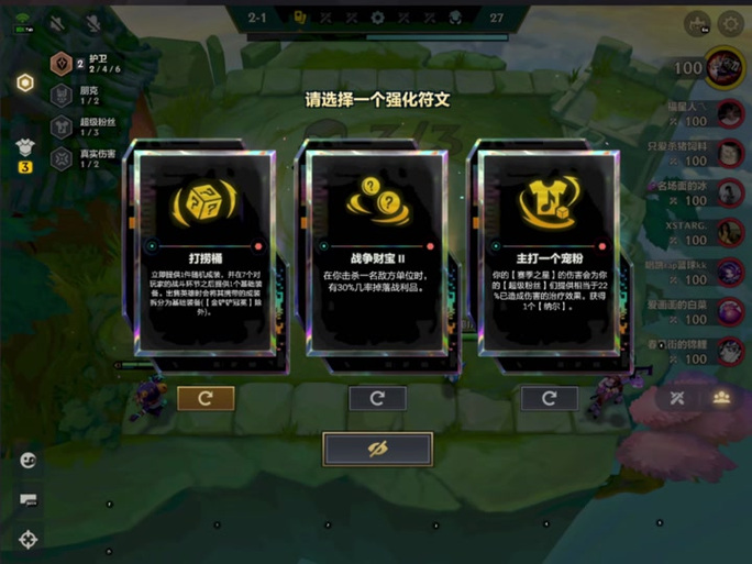 选取此海克斯后,需在限定时间内作出选取,此轮无限刷取牌池,无限制获取强力卡牌。反之,若手速与思考速度跟不上,此海克斯利弊并存,不建议新手尝试。突出一手快眼快,否则易吃亏。对自己手速有信心的玩家,可大胆选取,此海克斯能大幅提升阵容实力。
