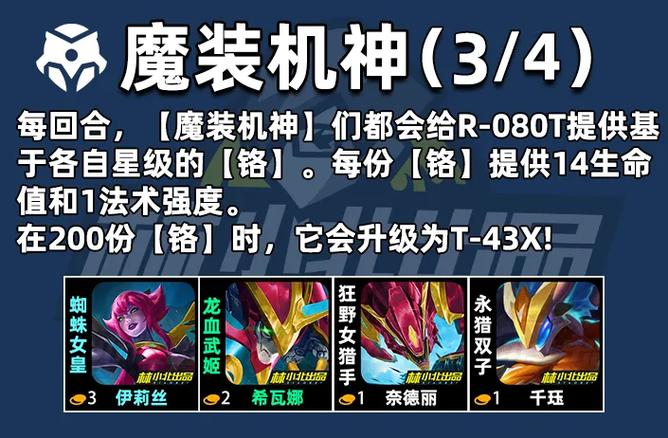 〖Four〗、龙神羁绊:效果:召唤出巨大的龙神单位,拥有高额的生命值和攻击力,以及独特的技能效果。搭配建议:合理搭配其他羁绊,如增强攻击或防御的羁绊,可以进一步强化龙神的能力。实战应用:龙神单位在战场上可以作为核心输出或肉盾,根据战况灵活调整战术。