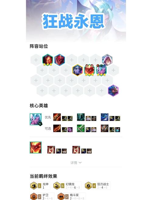 〖Three〗、阵容:以7变异战士为核心,搭配2格斗家、2巨像、2学者、1名流、1微光(9级可挂希尔科)。羁绊:7变异战士提供强大的属性加成,2格斗家增加前排坦度,2巨像则提供控制与肉盾,2学者增加回蓝速度,名流羁绊为关键输出位提供额外加成。装备选取 大虫子(科加斯):完美装备为分裂弓、饮血剑和反甲。