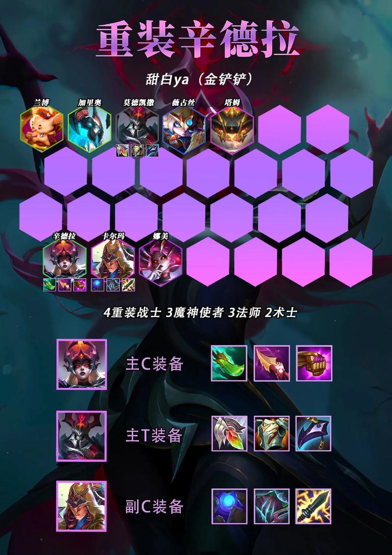 〖Three〗、金铲铲之战S7上分阵容分享第一套是法师转敖兴,索尔因为被霞的重骑天克,一星很难吃分,还是推荐大家使用法师过渡转敖兴,上篇法师内容已经把细节补充的非常完整了。第二套是冒险刀霞,传统阵容不会落伍,8人口全员两星除了打敖兴有很强的统治力,想吃鸡得升9或需要拿2个以上战力海克斯。