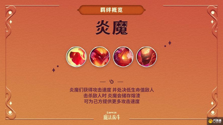 羁绊效果:3个法师时,所有友军获得35点魔法伤害;6个法师时,所有友军获得100点魔法伤害。1 恶魔:羁绊效果:恶魔的攻击有几率灼烧敌人的法力值并造成等额的真实伤害,几率随恶魔数量增加而增加。1 龙:羁绊效果:龙免疫魔法伤害。