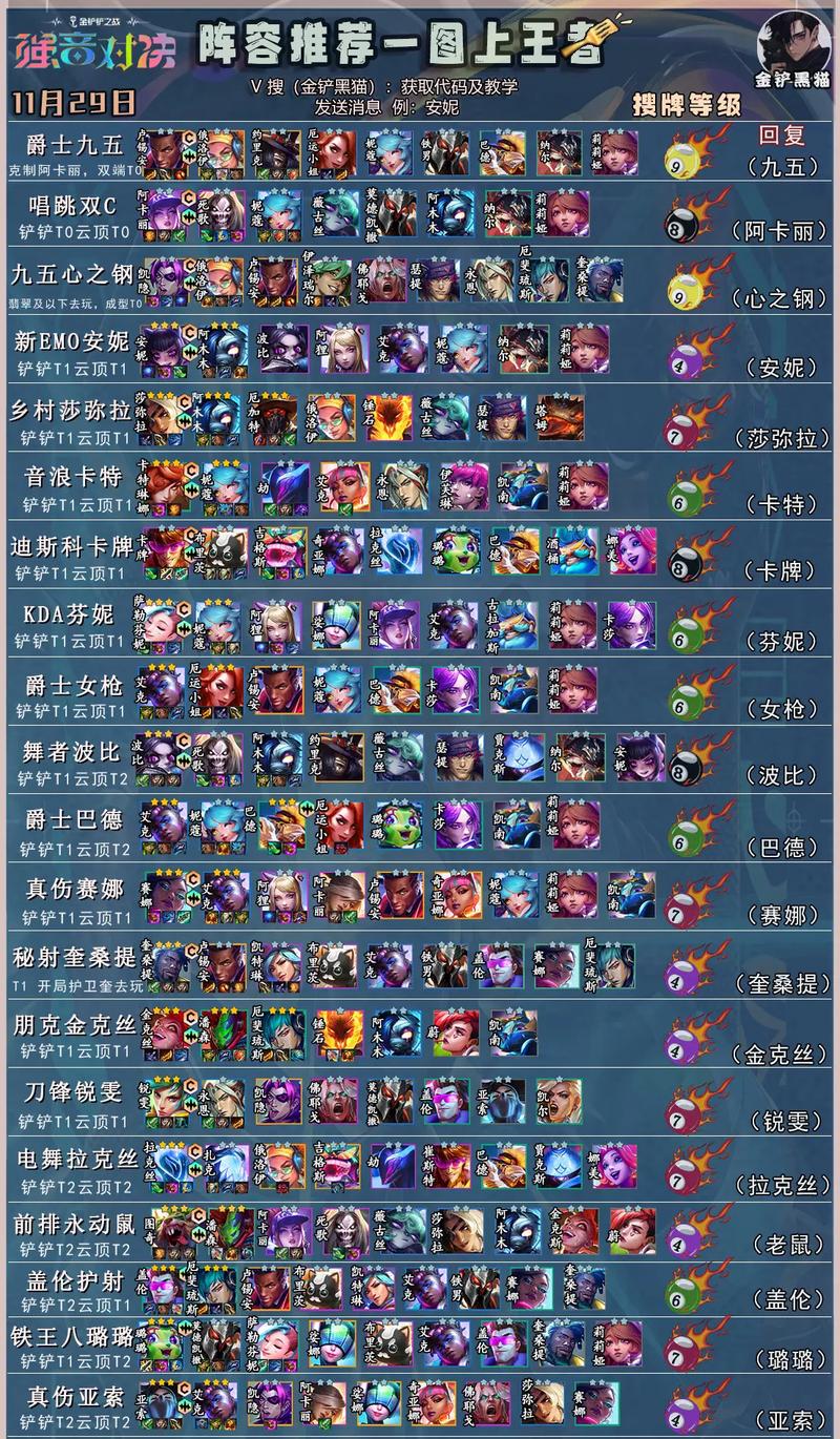 神谕卡尔玛阵容 特点:简单好上手,适合新手。核心英雄:卡尔玛(主C),慎(主坦)。羁绊效果:以神谕者为主,搭配艾欧尼亚等羁绊。装备推荐:卡尔玛装备法爆、巨杀、科技枪;慎装备龙牙、反甲、狂徒。诺克双C阵容 特点:肉盾与输出并存,稳稳吃分。核心英雄:德莱厄斯(诺手,主C),卡特(副C)。