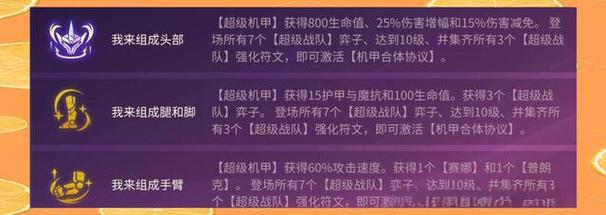 〖Two〗、金铲铲之战S15赛季的棱彩羁绊包括超级战队、星之守护者、斗魂战士、战斗学院和奥德赛。超级战队:这一羁绊需要玩家集齐三个特殊海克斯,分别是“我来组成头部”、“我来组成腿部”和“我来组成手臂”。