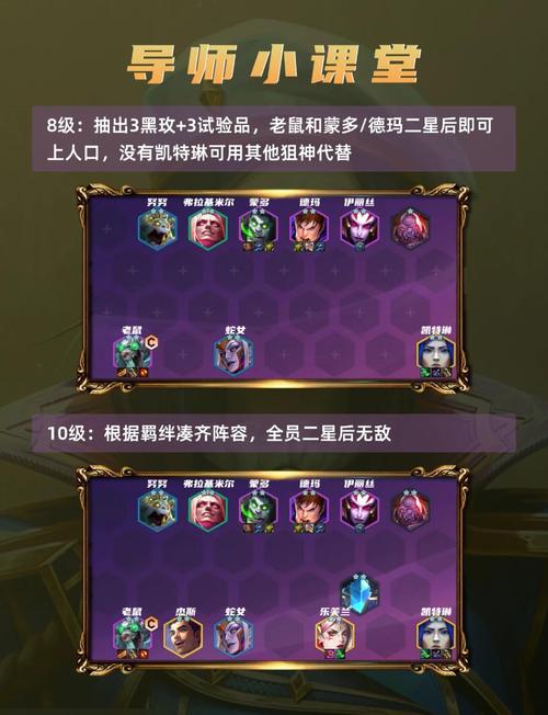 〖Three〗、阵容构成 核心英雄:马尔扎哈(蚂蚱),作为5费卡的主C,强度极高。其他成员:莫甘娜、吸血鬼、努努、蜘蛛、大头、盖伦、妖姬、杰斯。这些英雄共同构成了黑玫蚂蚱阵容,提供了强大的控制与输出能力。
