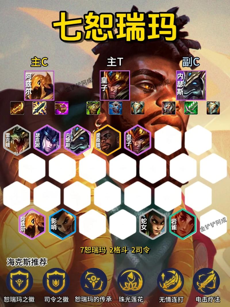〖Three〗、年《金铲铲之战》最新版本最强阵容推荐如下:高诺克裁决铁男强化符文需优先选取潘多拉的装备,确保C位铁男获得完美三件套;其次可选取诺克萨斯之心/徽/冕提升阵容上限,普雷西典书库可获取诺克萨斯转职以快速激活7诺克萨斯羁绊。