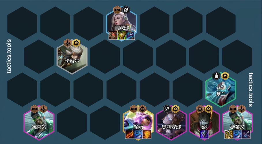 莫甘娜『3』:兼具输出与控制,是阵容中的关键角色。阿狸『4』:提供法术输出,增强阵容的爆发力。璐璐『2』:核心英雄,以救赎为核心装备,提供强大的治疗与增益效果。婕拉『2』:控制型英雄,能够限制敌方后排。赛娜『3』:提供额外的输出与控制,增强阵容的灵活性。烈娜塔『4』:法术输出英雄,能够造成范围伤害。