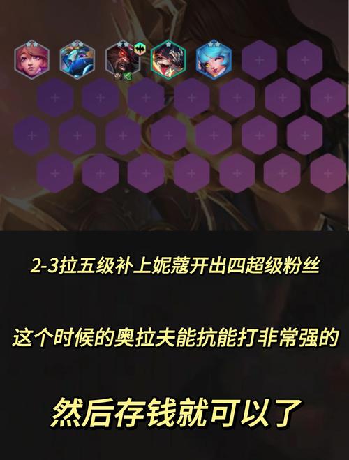 前期过渡阵容可以选取3/4魔盗团或3机甲+4斗士,提升经济收益和战斗力。2-1升4人口,2-5升5人口,3-2升级6人口,4-1升级7人口,找到1张佛耶戈后开3机甲+3混沌+2福牛+2护盾/2斗士羁绊。4-5或5-1升级8人口,大搜卡找到2星佛耶戈,有蕾欧娜直接开5机甲,有福牛转可8级开4福牛。