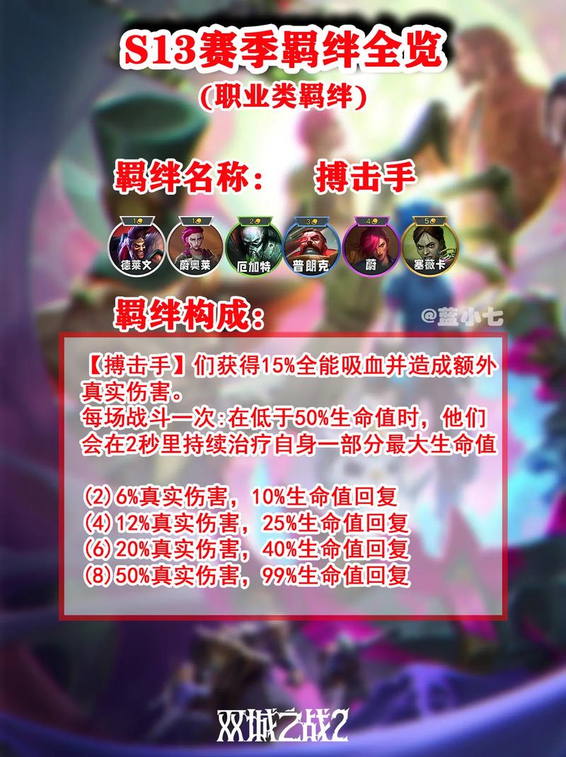 〖Six〗、《金铲铲之战》s14全羁绊图一览如下:职业类羁绊 战士:战士羁绊的棋子们拥有更高的攻击力与护甲,随着羁绊层数的提升,这些属性也会相应增加。战士羁绊适合打造前排坦克与输出并存的阵容。法师:法师羁绊的棋子们能够释放更强力的技能,技能伤害随羁绊层数的提升而增加。