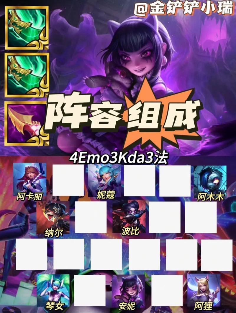 最新一期金铲铲之战的羁绊效果揭秘,S10赛季为我们带来了众多有趣的设定。首先,KDA超级粉丝羁绊确认为妮蔻、莉莉娅和阿卡丽,它们的互动将带来独特的增益,包括真实伤害击杀后的变身和装备转移,以及在特定情境下的团队强化,如五杀乐队的战斗提升和一盟呐喊带来的友军增益或敌方恐惧效果。