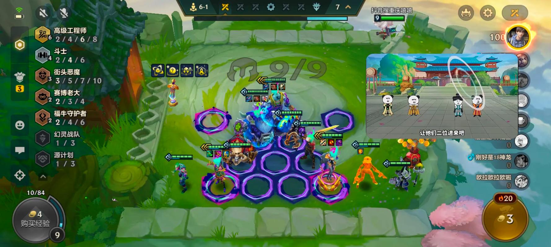 〖One〗、阵容组成与核心羁绊核心英雄为猴子(悟空),搭配辛德拉、洛、莫甘娜、巴德、时光、老头、丁真、卡尔玛。关键羁绊包括:4复苏:提升团队持续作战能力,通过复苏转职可激活5复苏,增强续航与技能频率。2花仙、2时间、2术师、2学者:提供法术强度、控制与辅助效果,强化阵容综合战力。