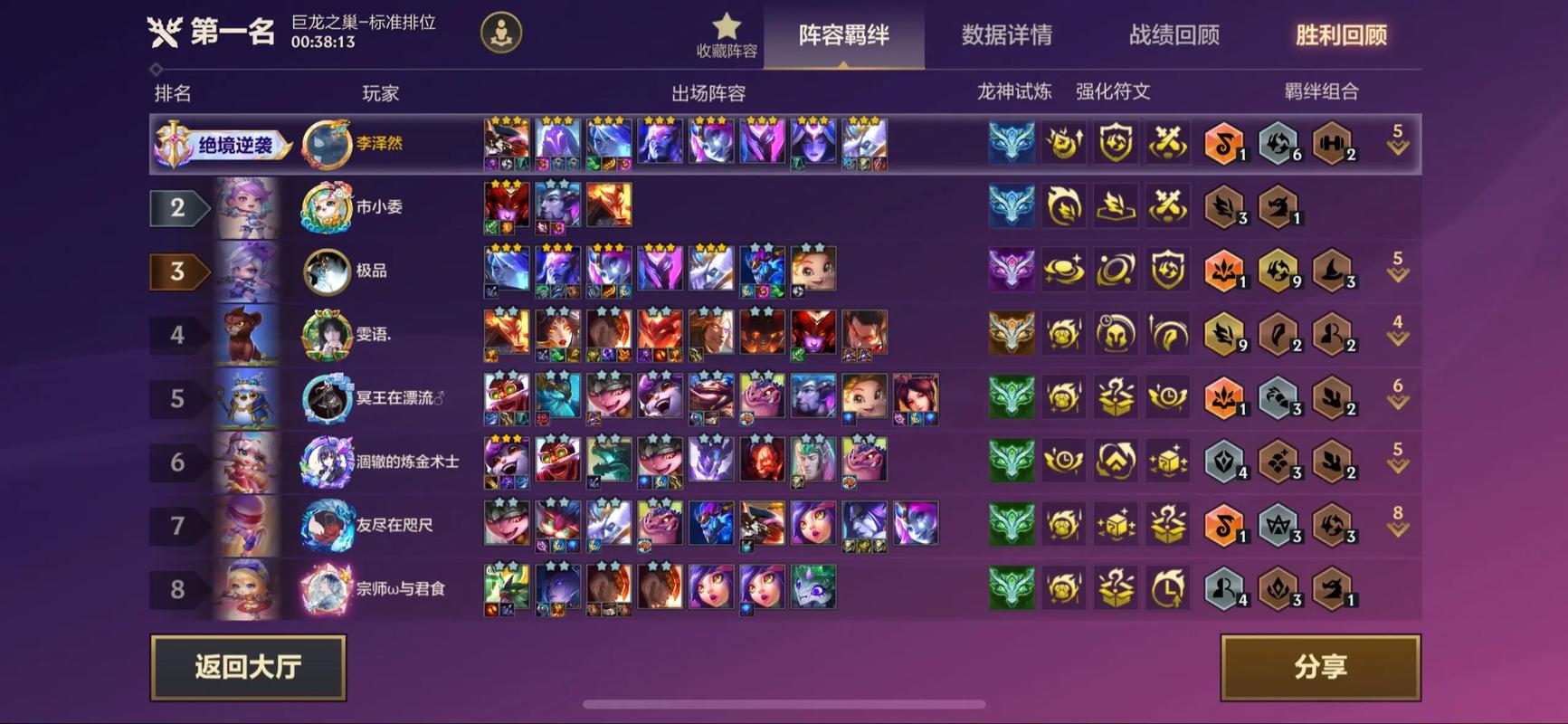 〖Six〗、后期:若选秀未拿到5费卡,则上7人口搜5费或先追4费三星。利用【装备拆卸器】或挤装备的方法灵活变换转职书目标,重复此过程直至游戏结束。注意事项:若无【星界龙转职】,则6人口全三星后上人口找【龙王】,组成【9星界龙】阵容,每5次搜牌有5%概率送一张【龙王】。