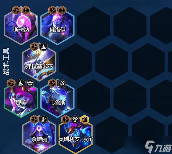 〖Two〗、金铲铲之战九星界龙玩法攻略:阵容组成 核心成员:娜美、吸血鬼、蝎子、维鲁斯、龙王、豹女、触手妈。阵容特点:九星界龙阵容以其高吃鸡率而著称,通过合理的装备搭配和海克斯选取,可以发挥出强大的战斗力。
