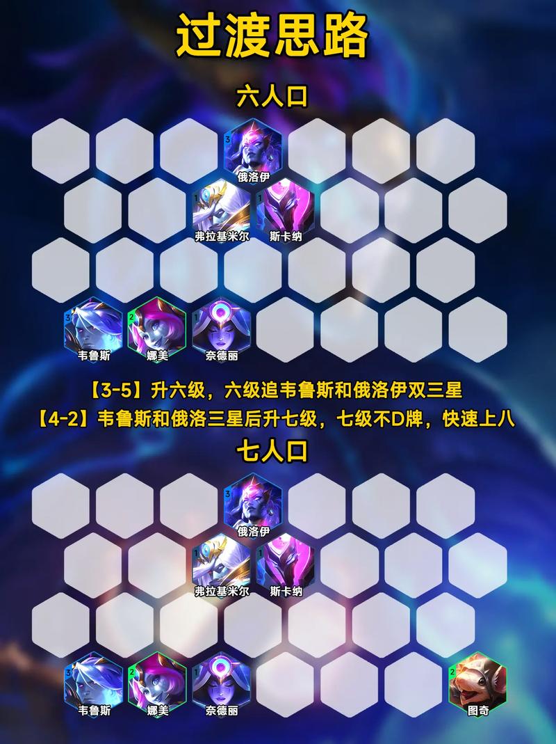 〖Two〗、操作策略中,古代档案是关键海克斯科技,可在7人口时使用以提高获取星界龙转职的概率。2-1阶段不拉人口,构建3星界龙,保利息至6人口,连败以确保4阶段选秀能拿到五费卡。5人口时过渡阵容,6人口时确保星界龙牌全部升至三星,此时寻找五费卡。