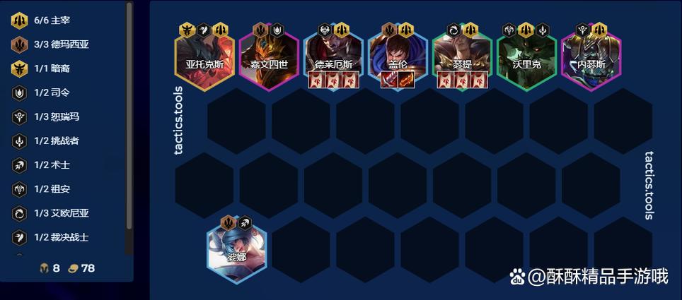 〖Three〗、金铲铲之战S9赛季强力阵容推荐:弗雷阿克尚阵容 核心思路:该阵容在阿克尚到来后实力显著提升,因此前期需耐心等待阿克尚的加入。关键操作:在阿克尚未到来前,注意控制血线,避免过早被淘汰。必要时,可以通过梭哈来寻找二星阿克尚以锁血,提升阵容实力。