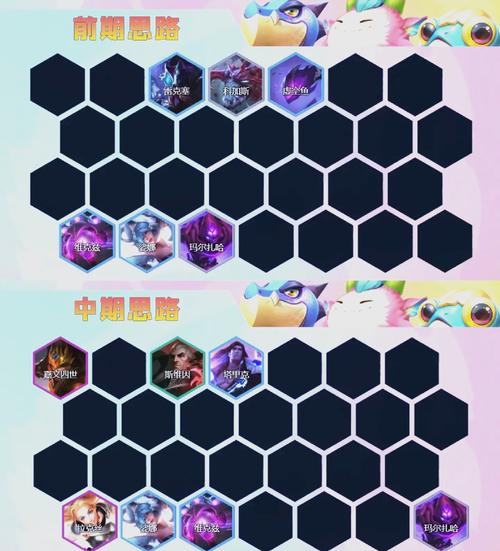 〖One〗、阵容构成 所需弈子:金克丝、潘森、锤石、厄斐琉斯、蔚、妮蔻、阿木木。组成羁绊:4朋克、4护卫、2疾射枪手。该阵容以朋克和护卫羁绊为核心,提供强大的输出和防御能力,同时疾射枪手羁绊增强金克丝的输出。