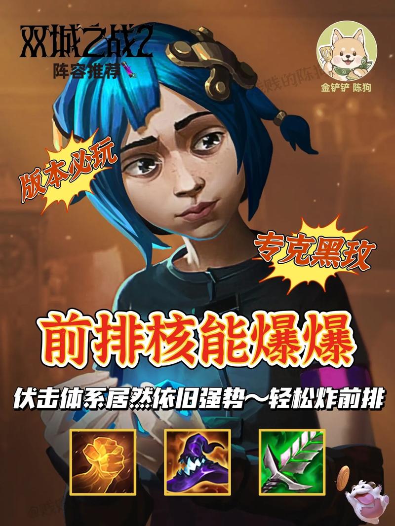 〖One〗、核心英雄:蔚(主C)、德莱文、爆爆、范德尔 运营关键:前期连败或连胜均可,中期搜出蔚、德莱文等核心卡,优先合成泰坦、饮血。16版本搏击手羁绊加强后,容错率显著提升,同行多也能吃分。优势:中期压制力强,适合快节奏对局,尤其克制后排脆皮阵容。