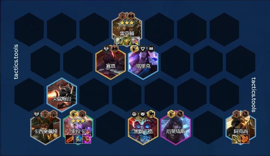 阵容组成 核心成员:卡特琳娜、瑟提、派克、阿兹尔、泰达米尔、蔚、嘉文四世、奈德丽、盖伦。此阵容在大成后几乎无敌。 阵容站位 前排:瑟提站在最前面,用于吸收第一波伤害并触发其技能效果。 卡特琳娜:务必让她跳到敌方人群中,以最大化其技能伤害。