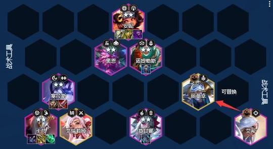 〖Four〗、羁绊组成 该阵容主要依赖3弗雷尔卓德(提供控制效果)、2祖安(提供额外装备和属性加成)、2亡眼射手(增加攻击距离和伤害)、2神谕者(提供法力值回复)以及2潜行者(增加暴击伤害和暴击几率)的羁绊组合,形成一套兼具控制、输出和续航能力的阵容。