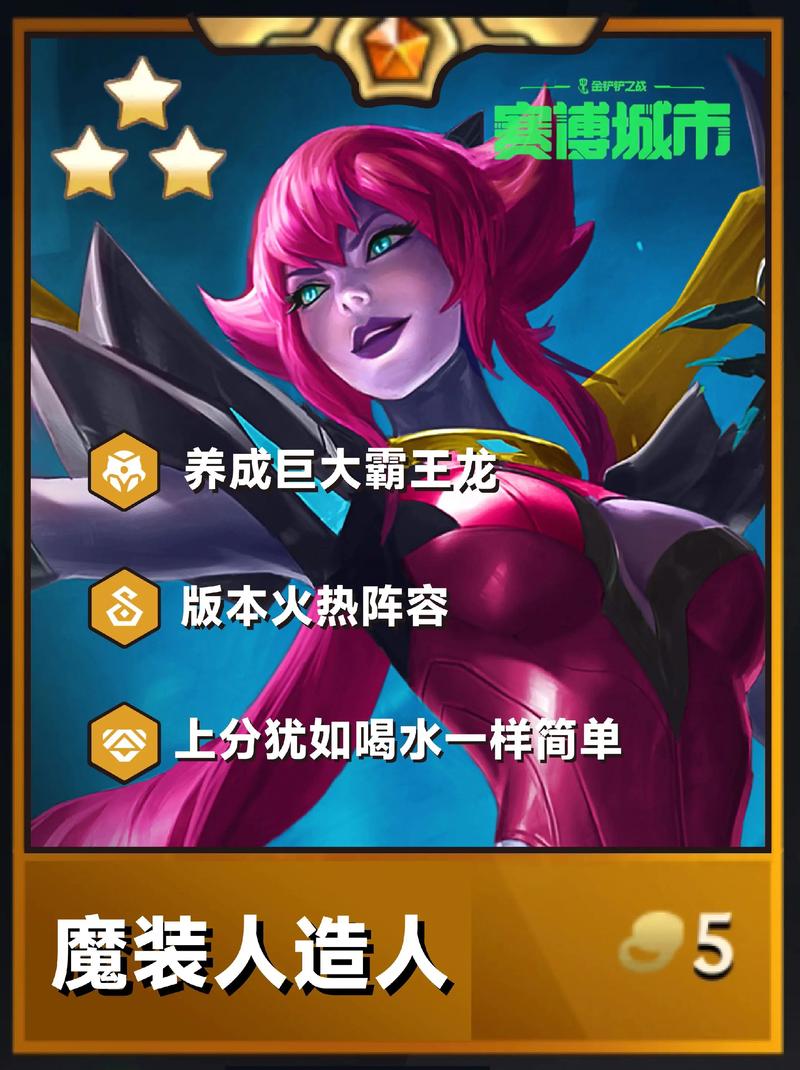 〖Four〗、优先选取低费皮城牌(如杰斯、蔚)凑齐羁绊,通过卖血连败快速积累霸王龙层数。避免主动升级人口,保持低血量以触发连败奖励,同时观察对手阵容,防止被高战力单位打断连败。中期收菜时机与转型 收菜条件:当霸王龙能量层数达30层以上时(通常为7级阶段),需果断收菜。
