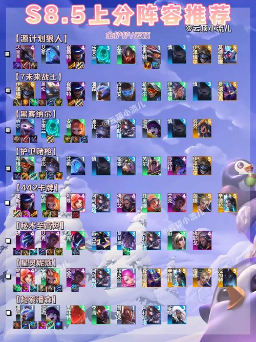 在最新的更新中,有几个阵容由于新英雄加入或者现有英雄能力调整变得异常强势。下面将介绍三个当前非常流行并且容易上分的阵容。